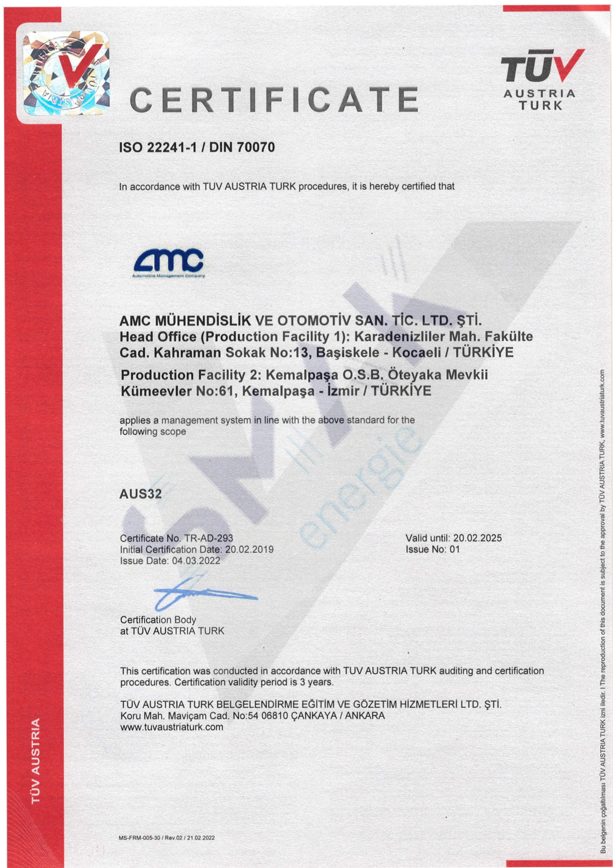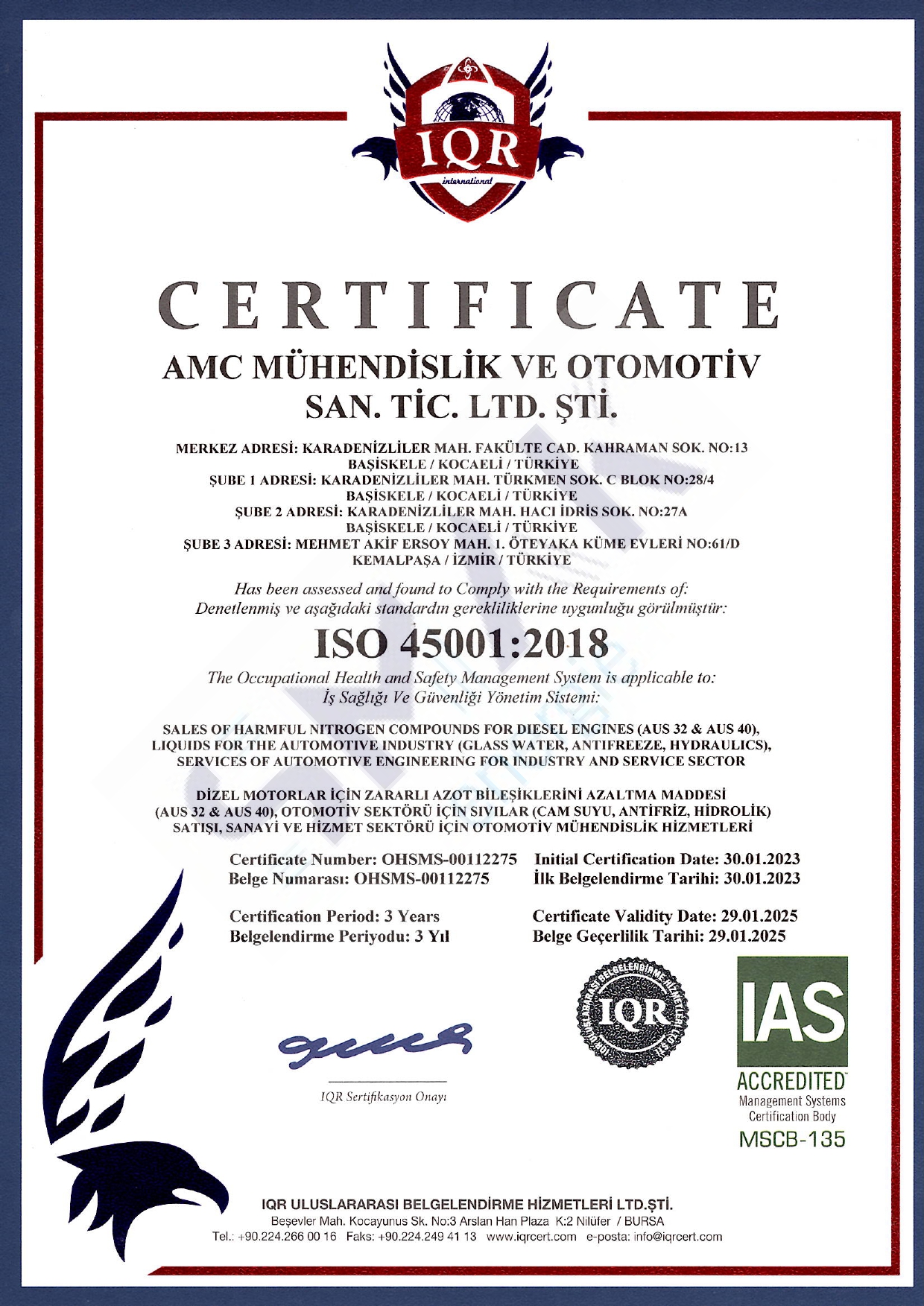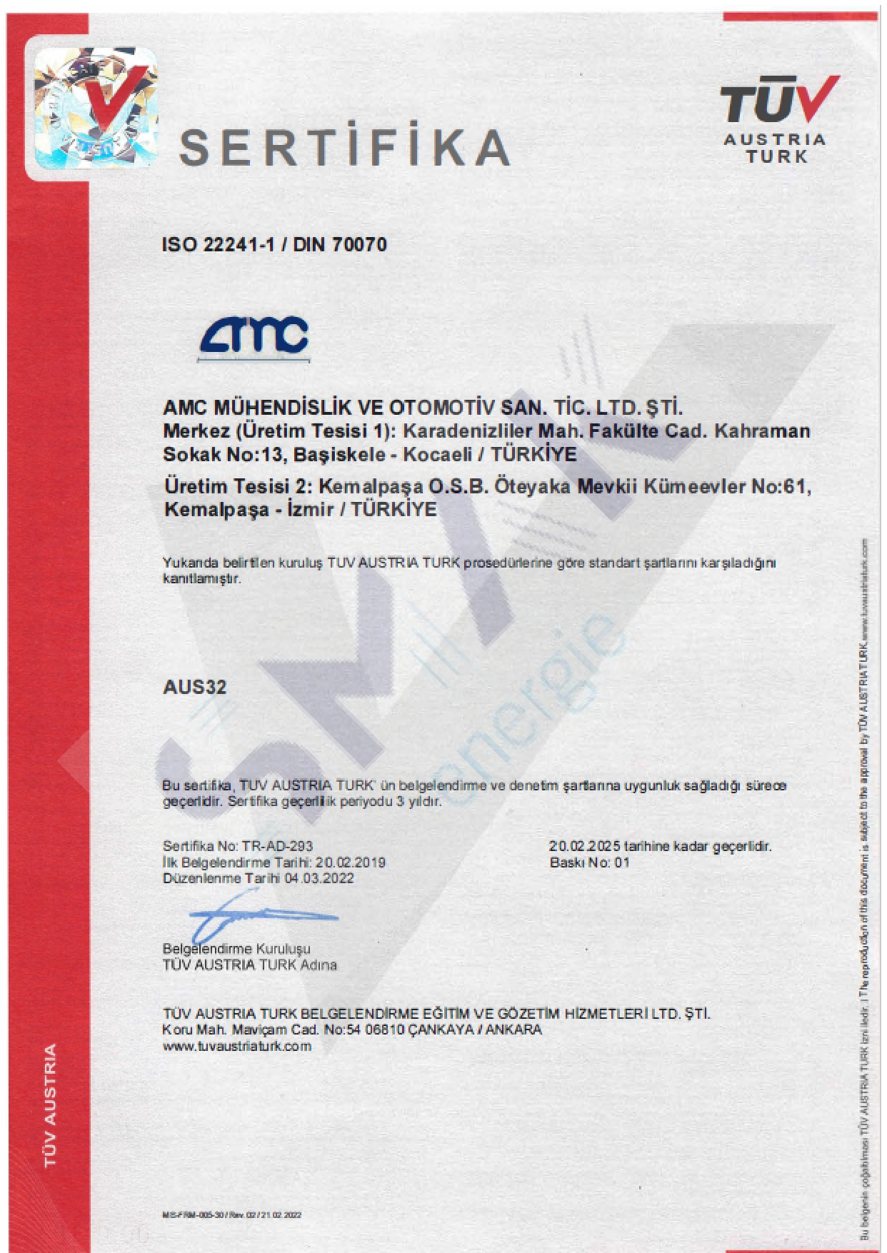 • SERTİFİKALAR